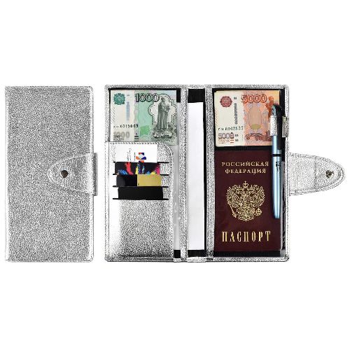 Органайзер-обложка 222х110 мм для путешествий, искусственная кожа, 2 отделения, серебряный металлик