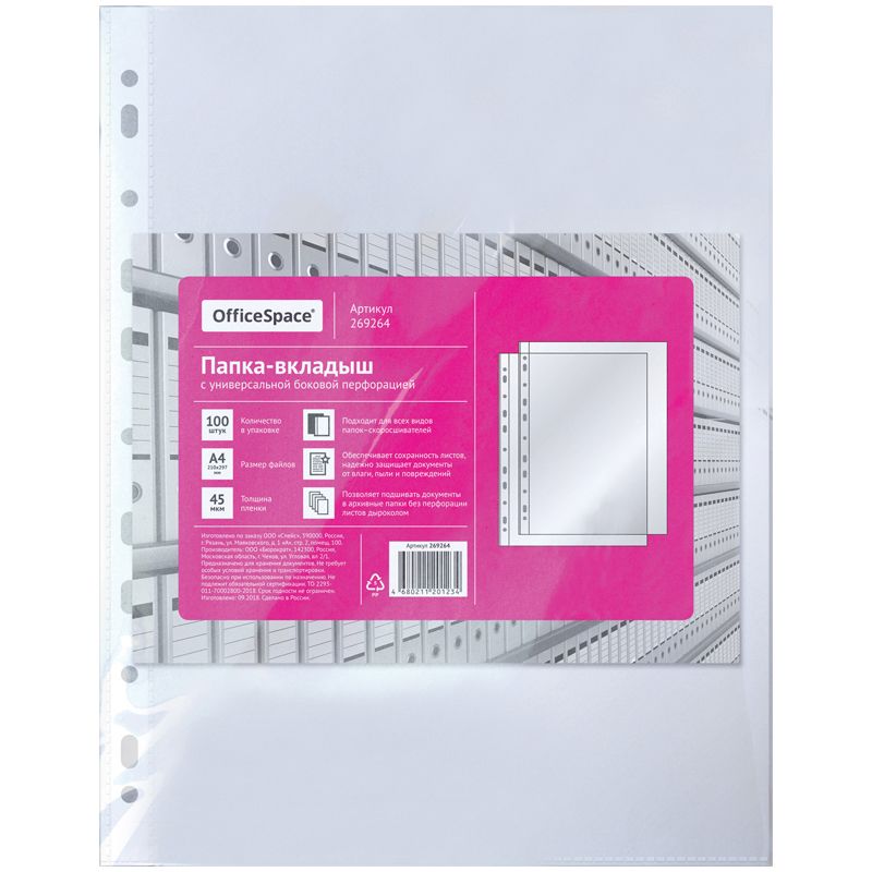Вставка в сегрегатор А4 глянцевая 45 мкм 100 шт. в упаковке (до 50 листов) OfficeSpace/30