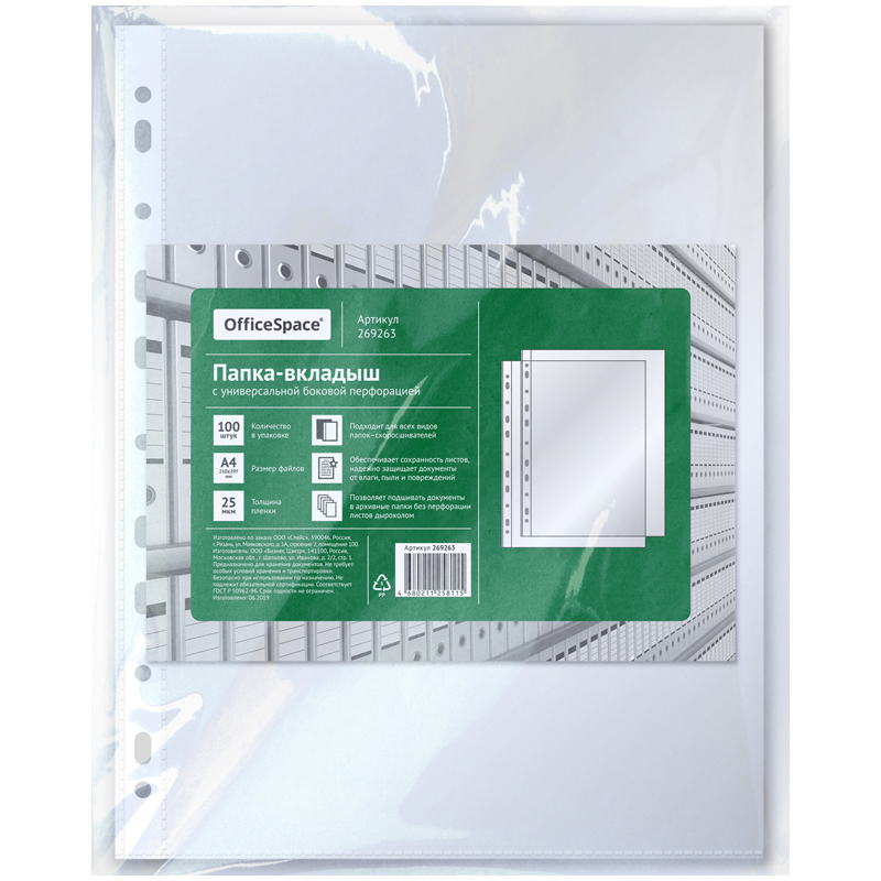 Вставка в сегрегатор А4 матовая 25 мкм 100 шт в упаковке OfficeSpace/40