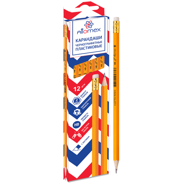 Карандаш простой с ластиком HB Attomex пластиковый желтый/12/72