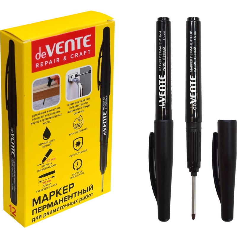 Маркер перманентный круглый черный 1,5 мм deVENTE "PEPAIR&CAFT.Long Tip" для разметочных работ/12/14