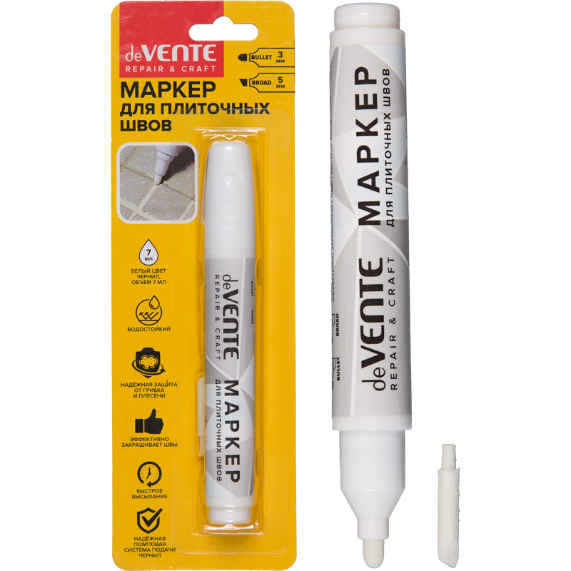 Маркер перманентный для плиточных швов белый deVENTE Repair&Craft Grout/12