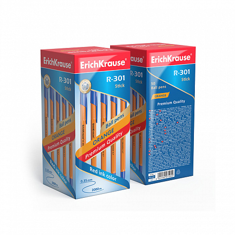 Ручка шариковая синяя 0,7 мм ErichKrause R-301 Orange/Охра/50/400