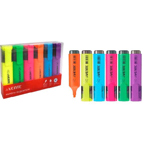 Набор текстовыделителей 6 шт. (зеленый, желтый, розовый, оранжевый, голубой. сирен.) deVENTE/12/144