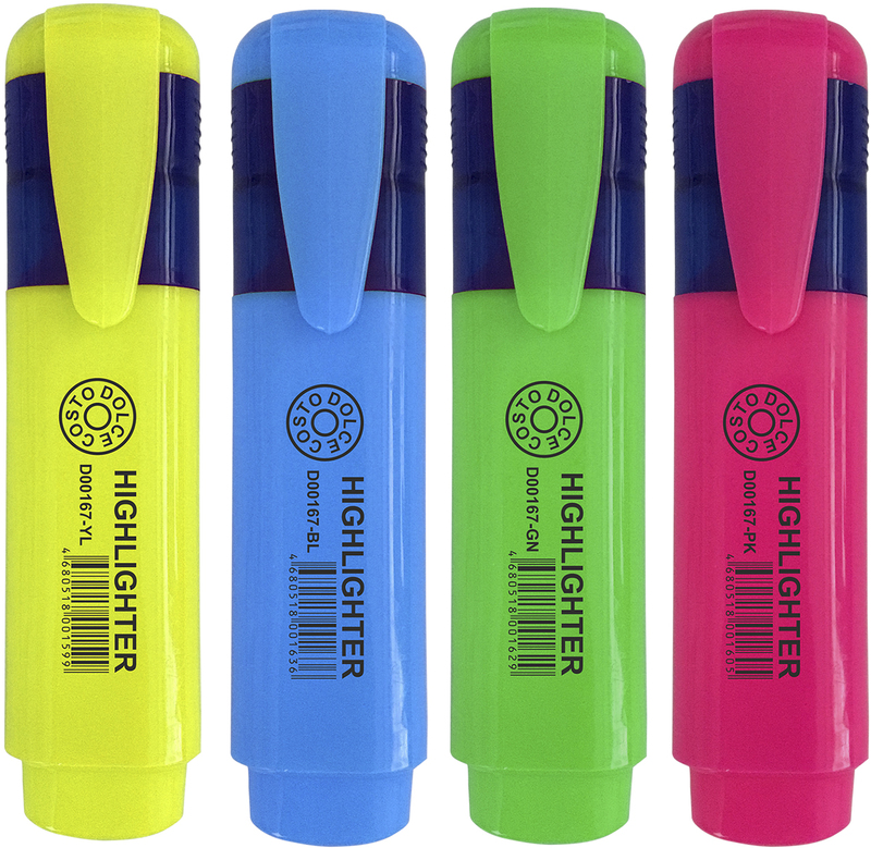 Набор текстовыделителей 4 шт. (голубой, желтый. зеленый, розовый) DOLCE COSTO/50