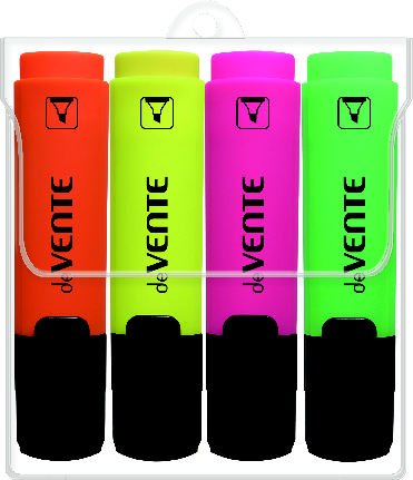 Набор текстовыделителей 4 шт. (желтый, зеленый, оранжевый, розовый) deVENTE/12/144