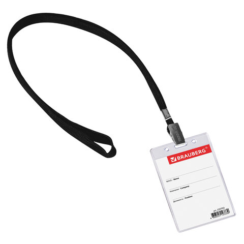 Идентификатор вертикальный 90х60 мм на черной ленте 45 см BRAUBERG/20/400