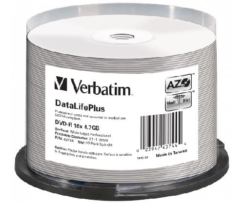 Матрица DVD-R 4.7Gb Verbatim 16X Cake Box (50) INKJET PRINTABLE (43744)