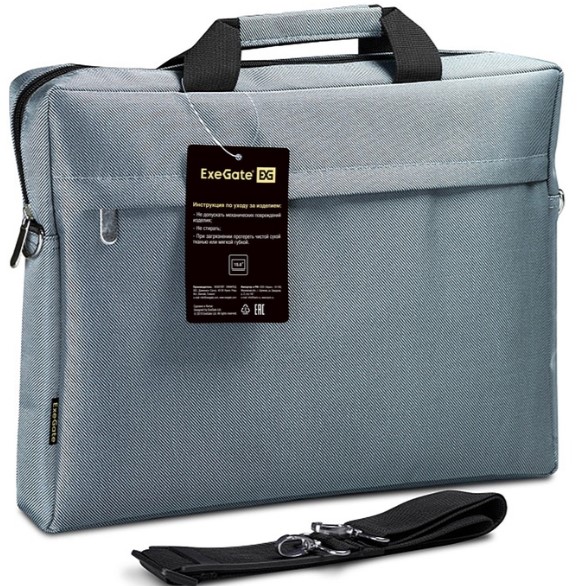 Сумка для ноутбука ExeGate Start S15 Grey, серая, полиэстер, для ноутбуков до 15.6"