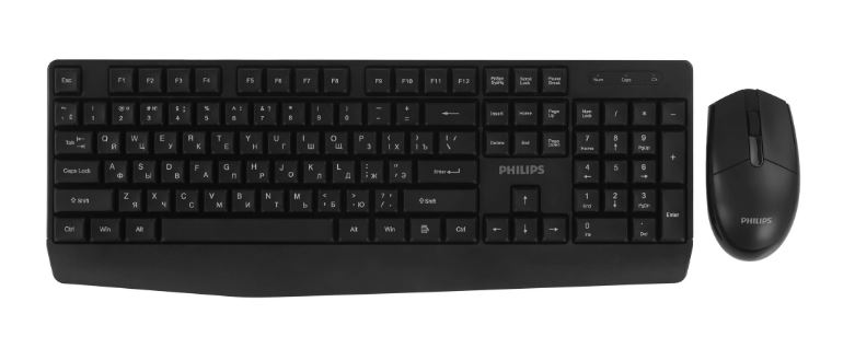 Беспроводной комплект Philips SPT6337B, 2.4 GHz 104 клав/3 кнопки, 1600dpi, русская заводская раскладка, чёрный
