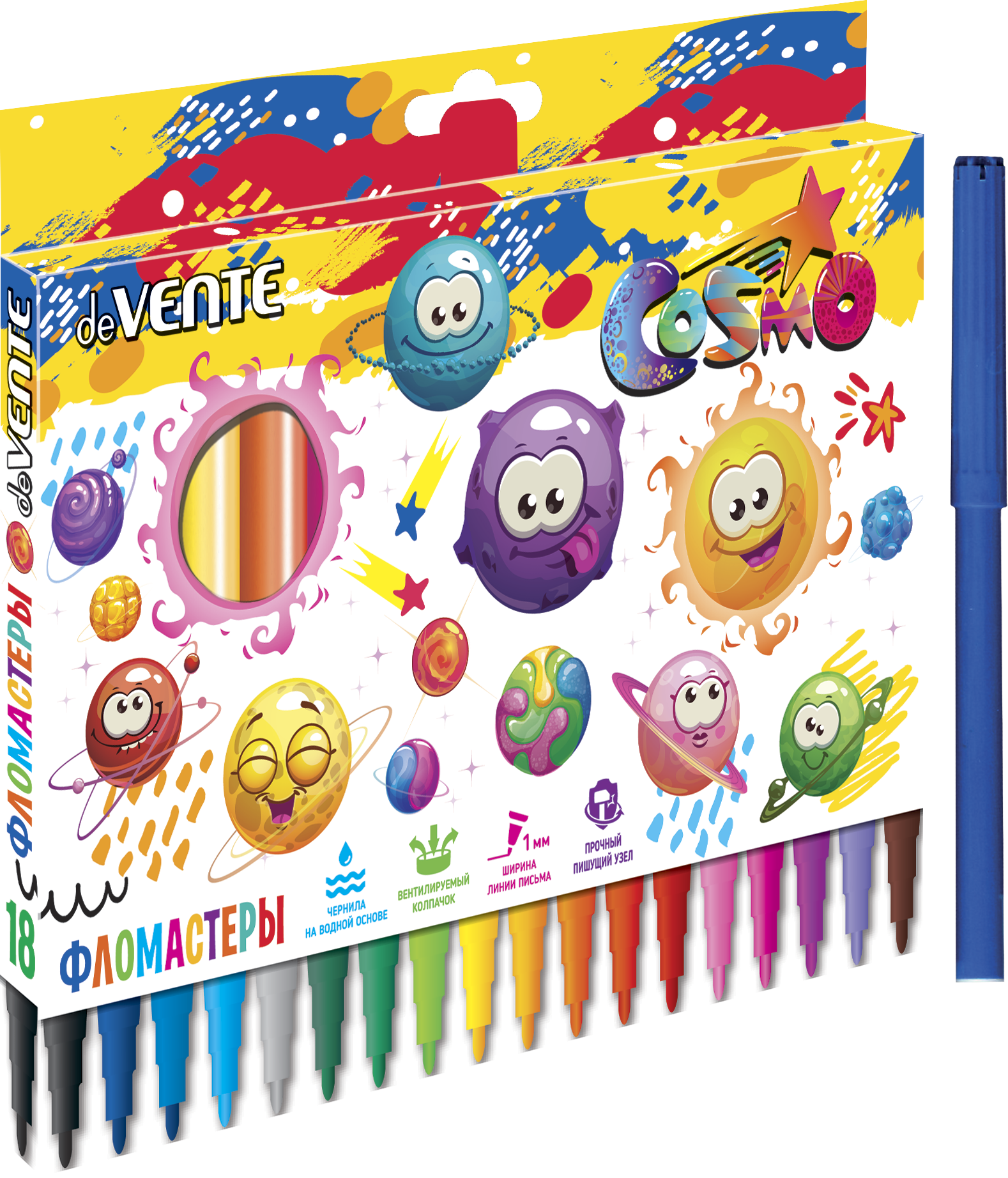 Фломастеры 18 цветов deVENTE Cosmo в картонной коробке с подвесом/12/144