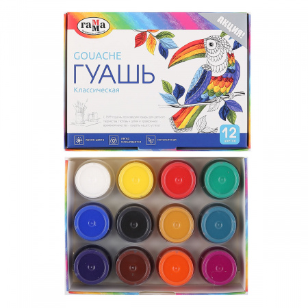 Гуашь 12 цветов по 20 мл Гамма "Классическая"/8