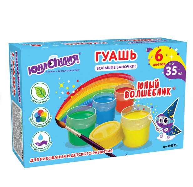 Гуашь 6 цветов по 35 мл ЮНЛАНДИЯ "Юный волшебник"/24