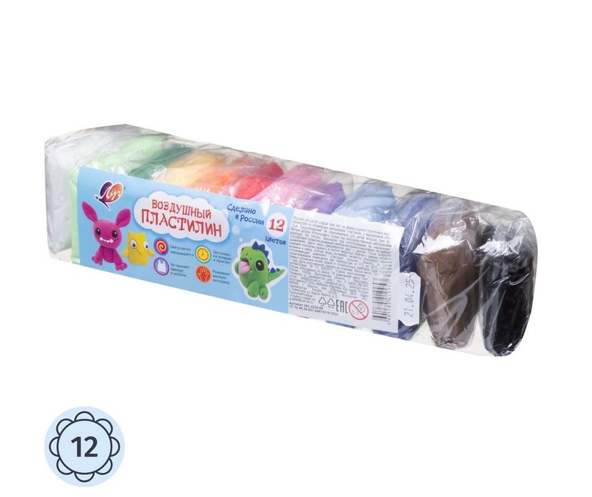 Пластилин 12 цветов 120 г. Луч воздушный