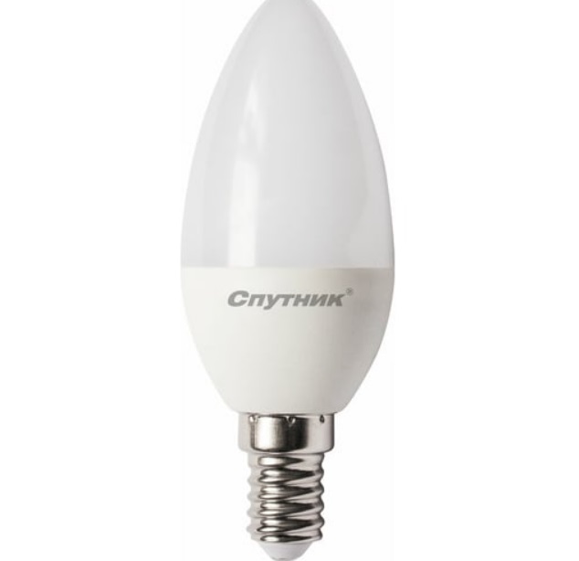 Лампа светодиодная E14 8W-827 LED C37 свеча Спутник (теплый белый свет)
