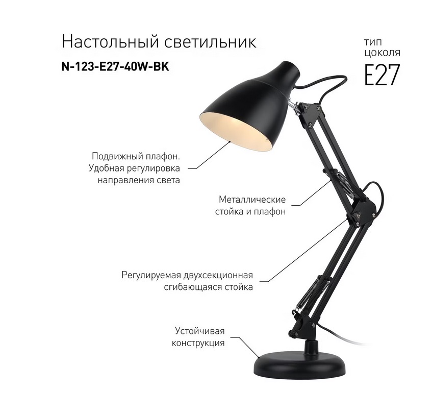 Лампа настольная ЭРА N-123 Е27-40W -BK черная