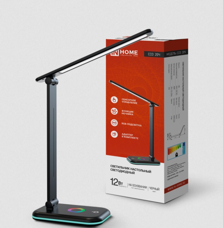 Лампа настольная IN HOME CCO-20 Ч (12 W, сенсорное включение, 3 уровня яркости, RGB-подсветка ) черн