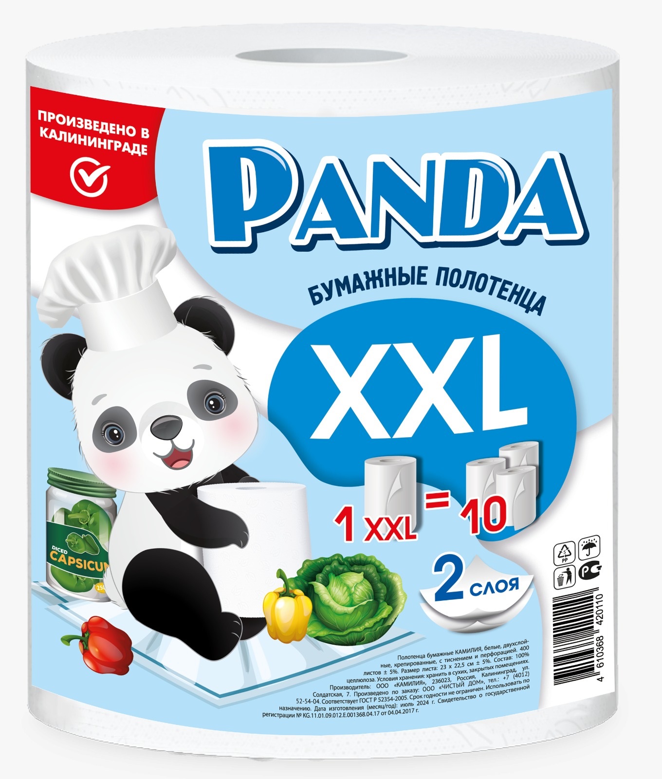 Полотенца бумажные в рулонах 1*1, 2 сл. Panda XXL 500 л белые с рисунком/6