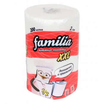 Полотенца бумажные в рулонах 1*1, 2 сл. Familia XXL 25 м 200 л белые/18