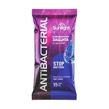 Салфетки влажные 15 шт. Sanlight антибактериальные/48