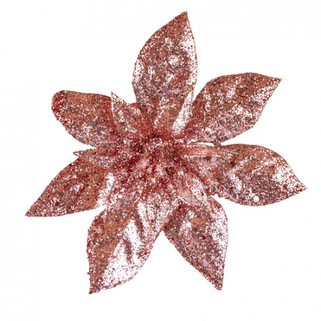Декор новогодний цветок Пуансеттия блеск 14*15 розовое золото на прищепке