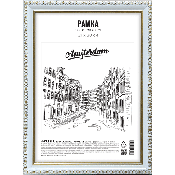 Рамка 21х30 см пластик белая/золото/25